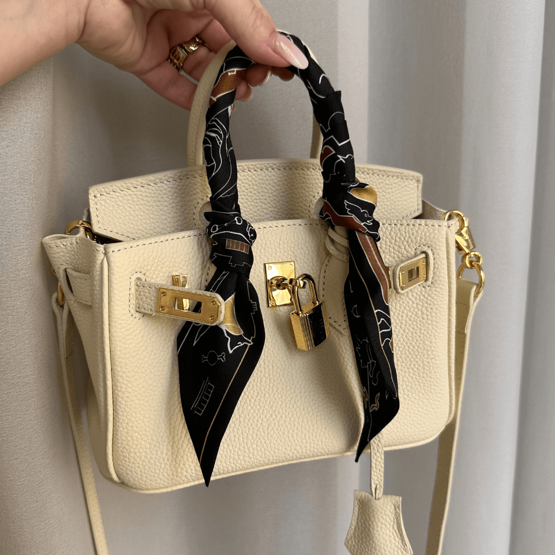 Enhance the look of your handbag with a beautiful twilly scarf wrapped around the handle. Incredibly versatile can be used as a super stylish neck scarf or even as hair accessory.