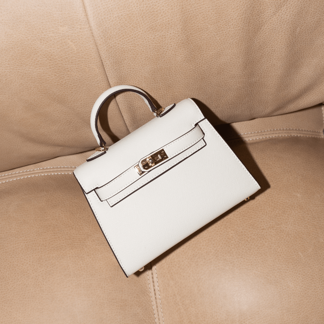 Designed in beautiful leather, creating an irresistibly chic and luxurious look. Its petite size and trapezoid shape makes it the perfect accessory for both the fashionably savvy and sophisticated trendsetters. Our timeless Claire handbag is designed in a smaller size, ideal for everyday use, yet with enough space to store all the everyday essentials.