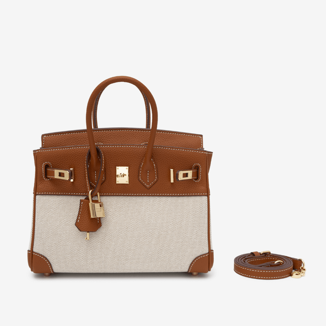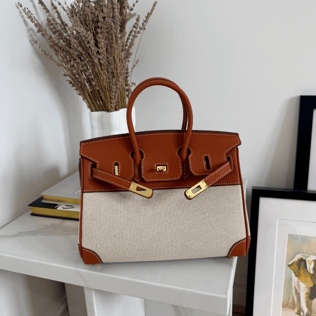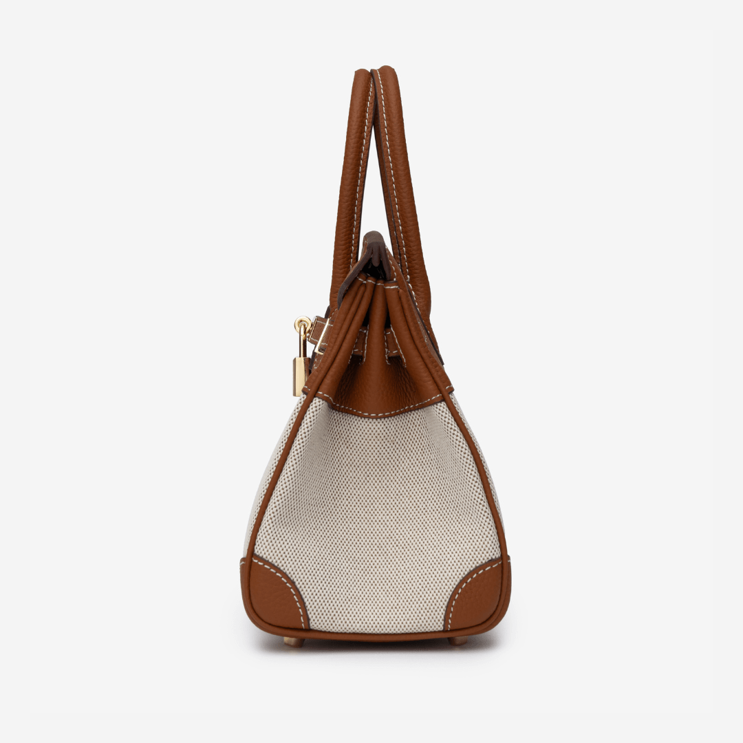 Classic meets contemporary in the Jacqueline bag. Crafted from smooth canvas and supple leather, it’s finished with polished gold hardware and a structured silhouette. Smart enough for the office, timeless enough for everyday—your new signature carryall awaits.