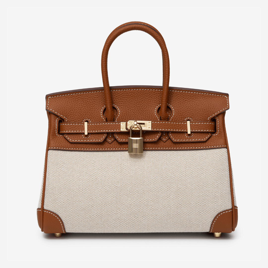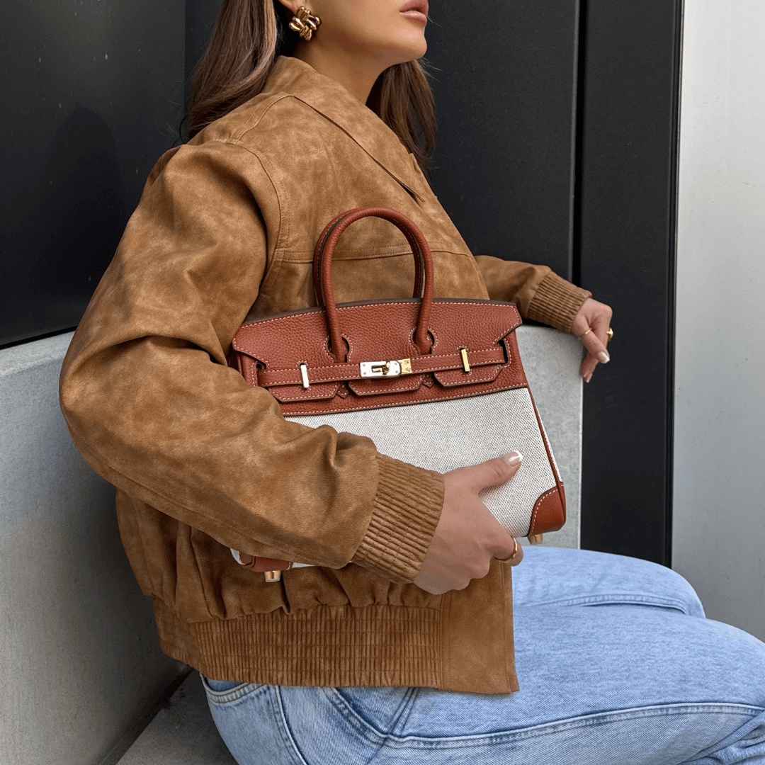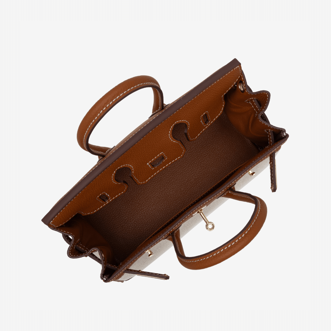 Classic meets contemporary in the Jacqueline bag. Crafted from smooth canvas and supple leather, it’s finished with polished gold hardware and a structured silhouette. Smart enough for the office, timeless enough for everyday—your new signature carryall awaits.